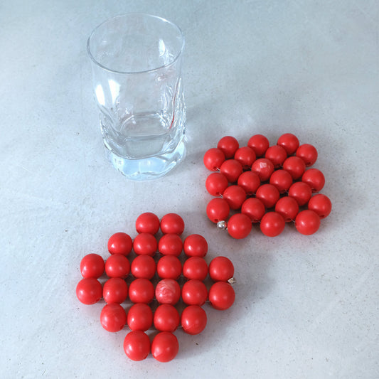 PLAY 5 Untersetzer Set of 2 | 70s Perlen Silber Rot