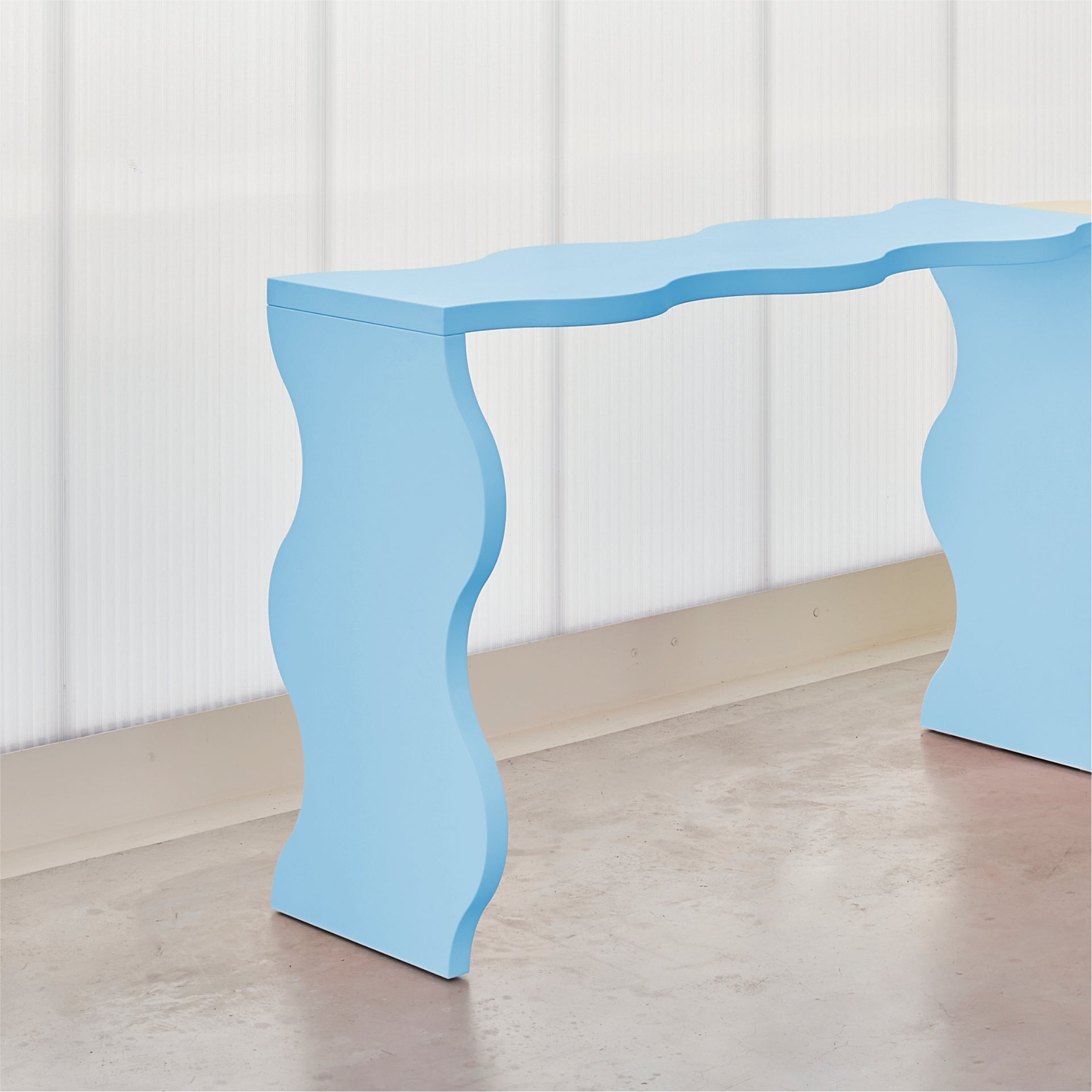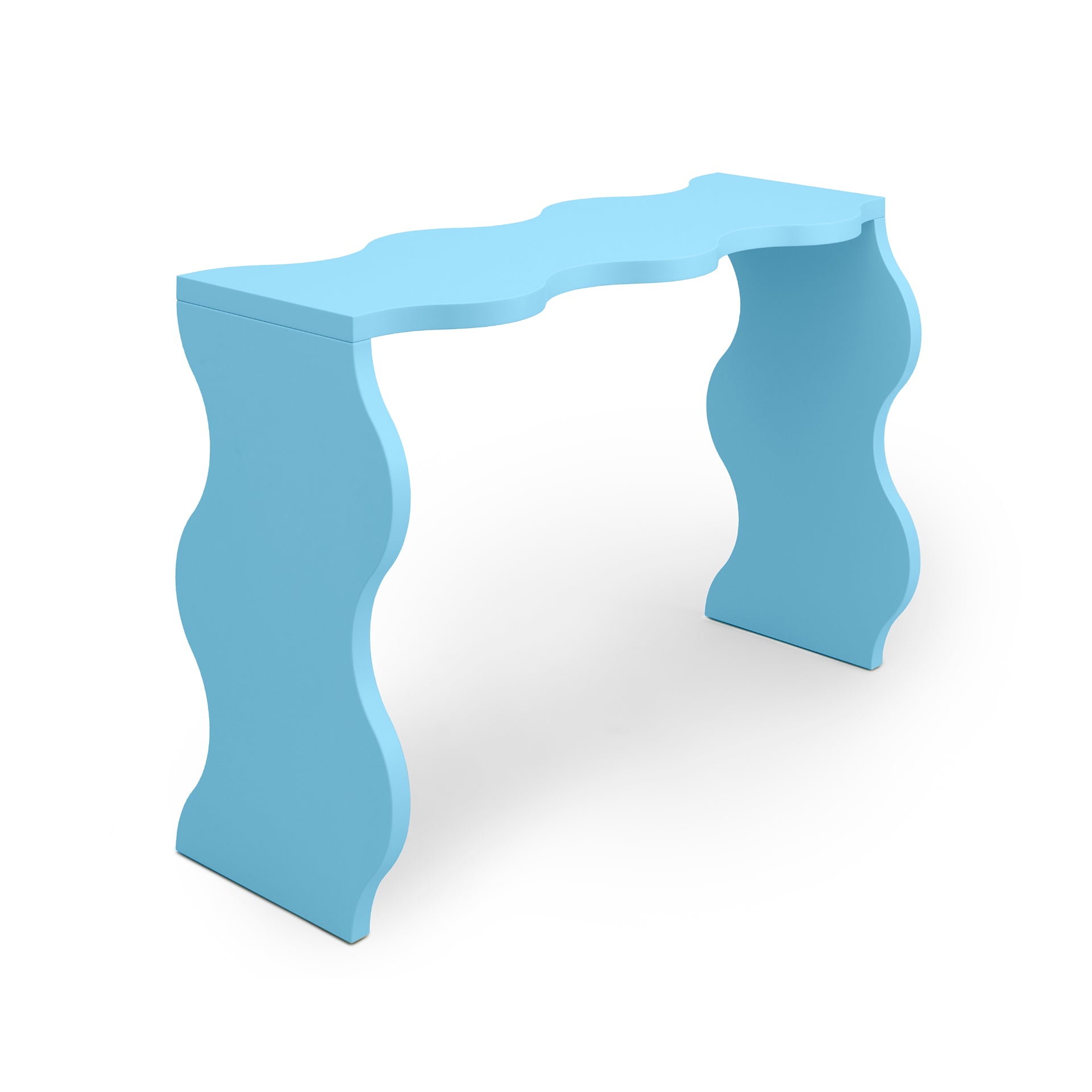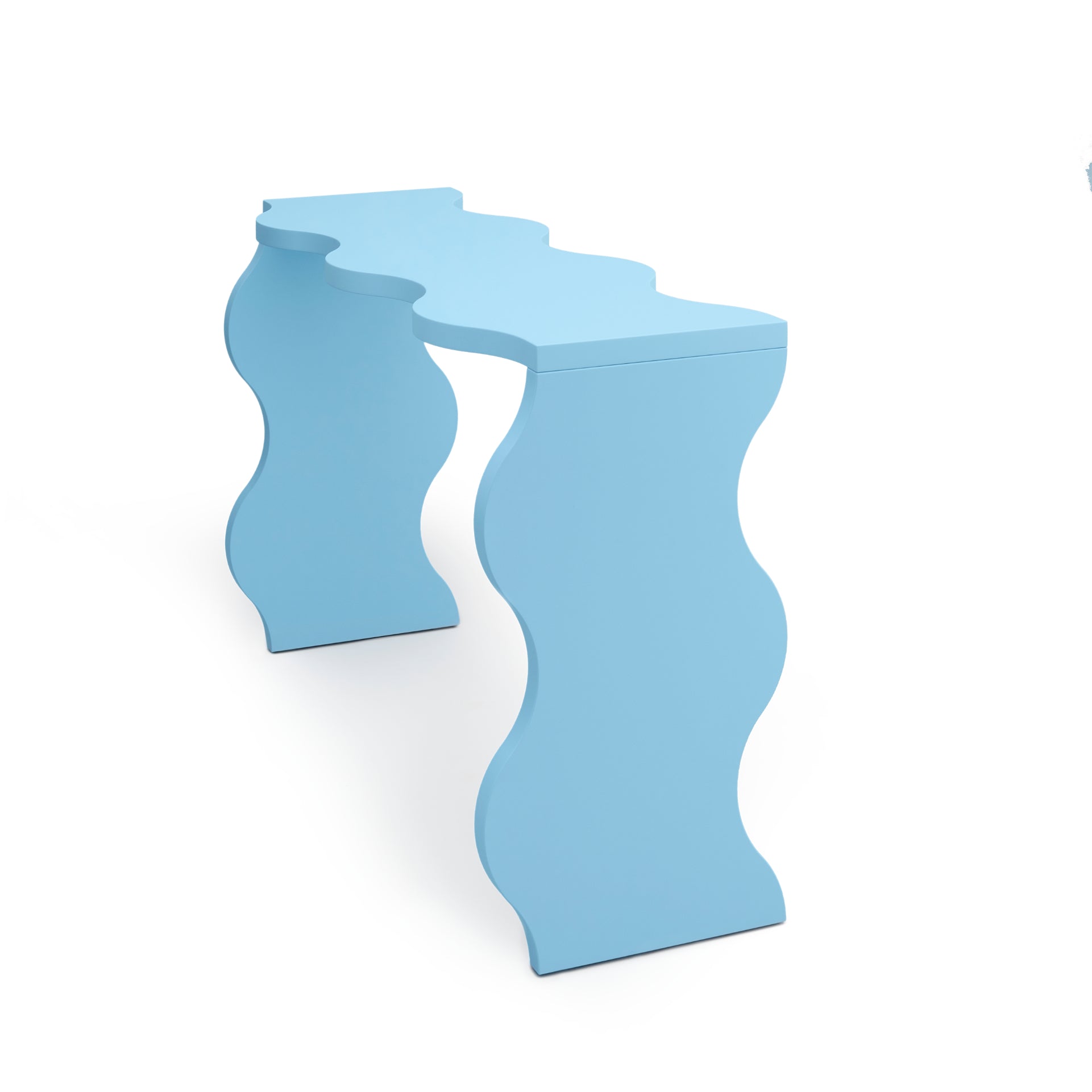 Die skulpturale Konsole AGATHA, entworfen von Julius Heinzl für BANNACH, besticht durch ihre fließende Form und farbenfrohe Präsenz im Raum.
