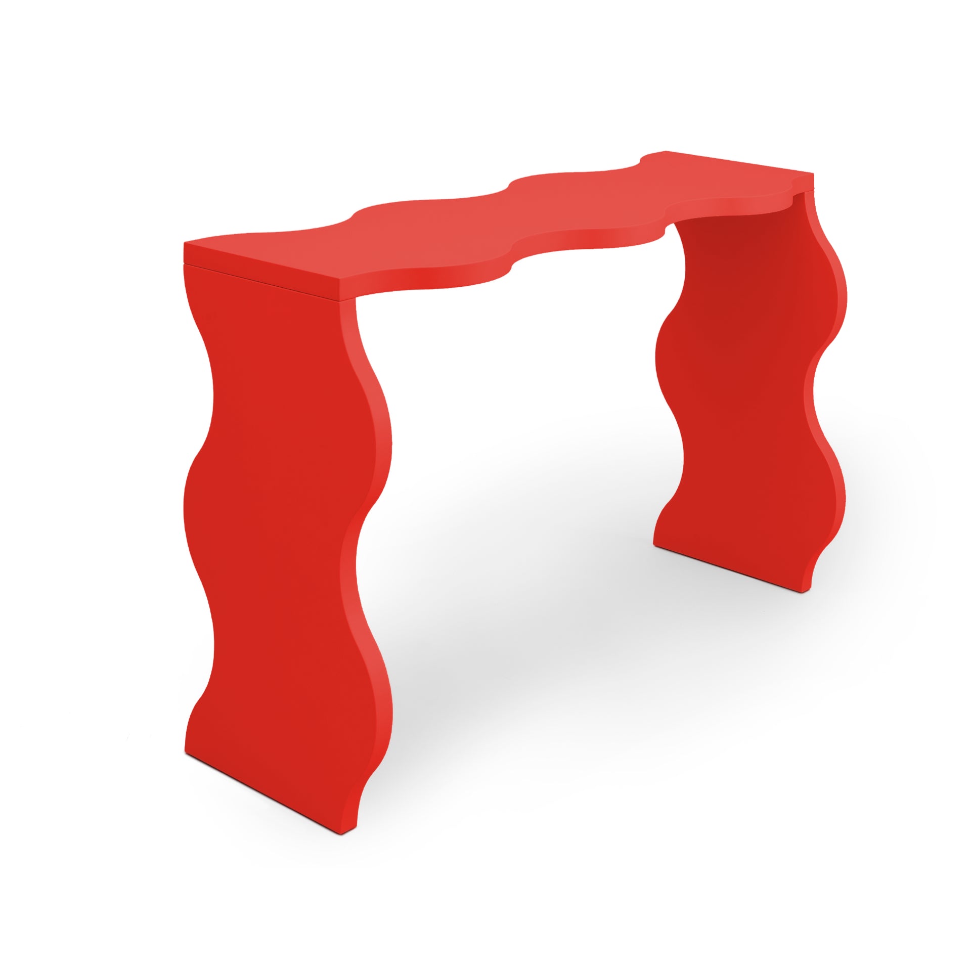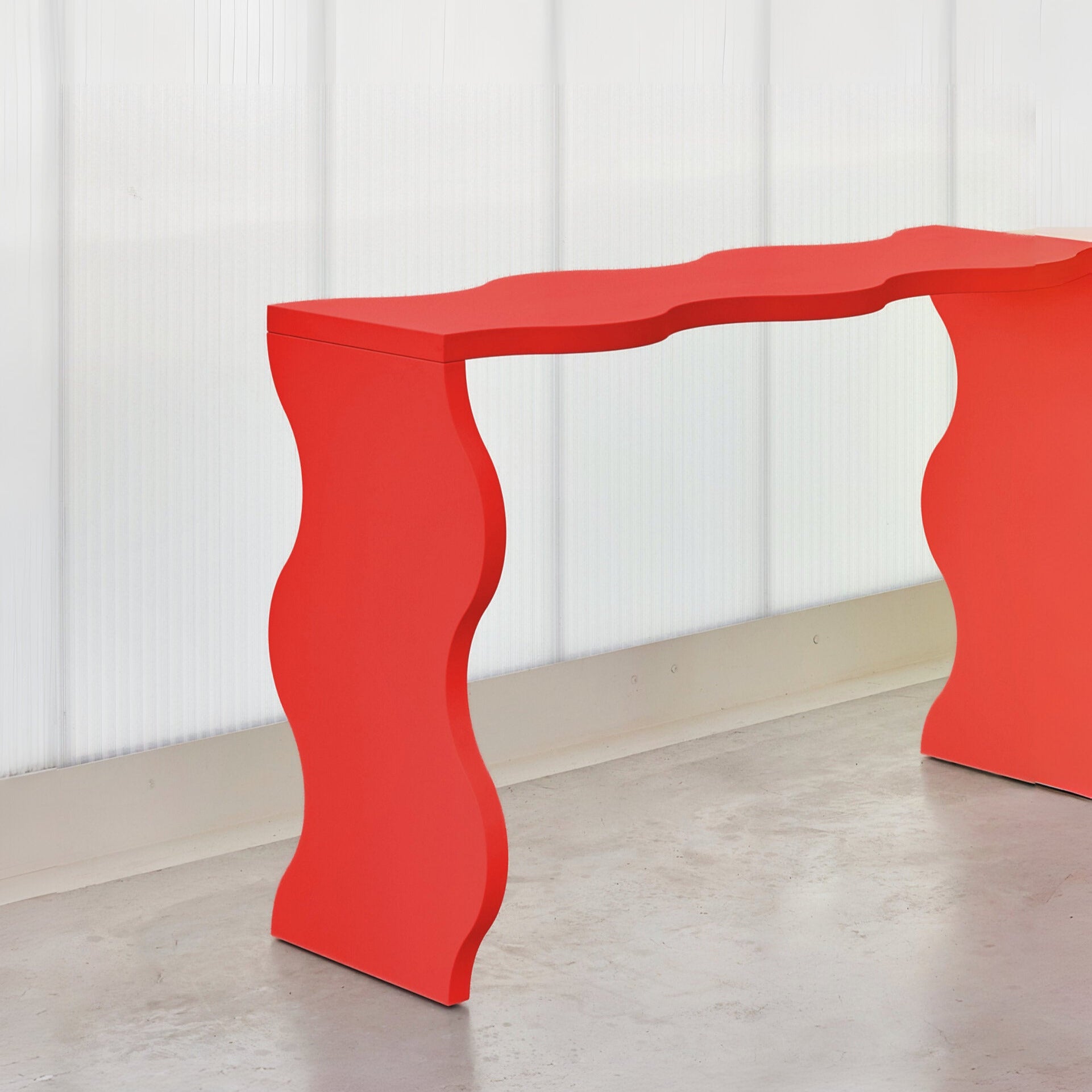 Die skulpturale Konsole AGATHA, entworfen von Julius Heinzl für BANNACH, besticht durch ihre fließende Form und farbenfrohe Präsenz im Raum.