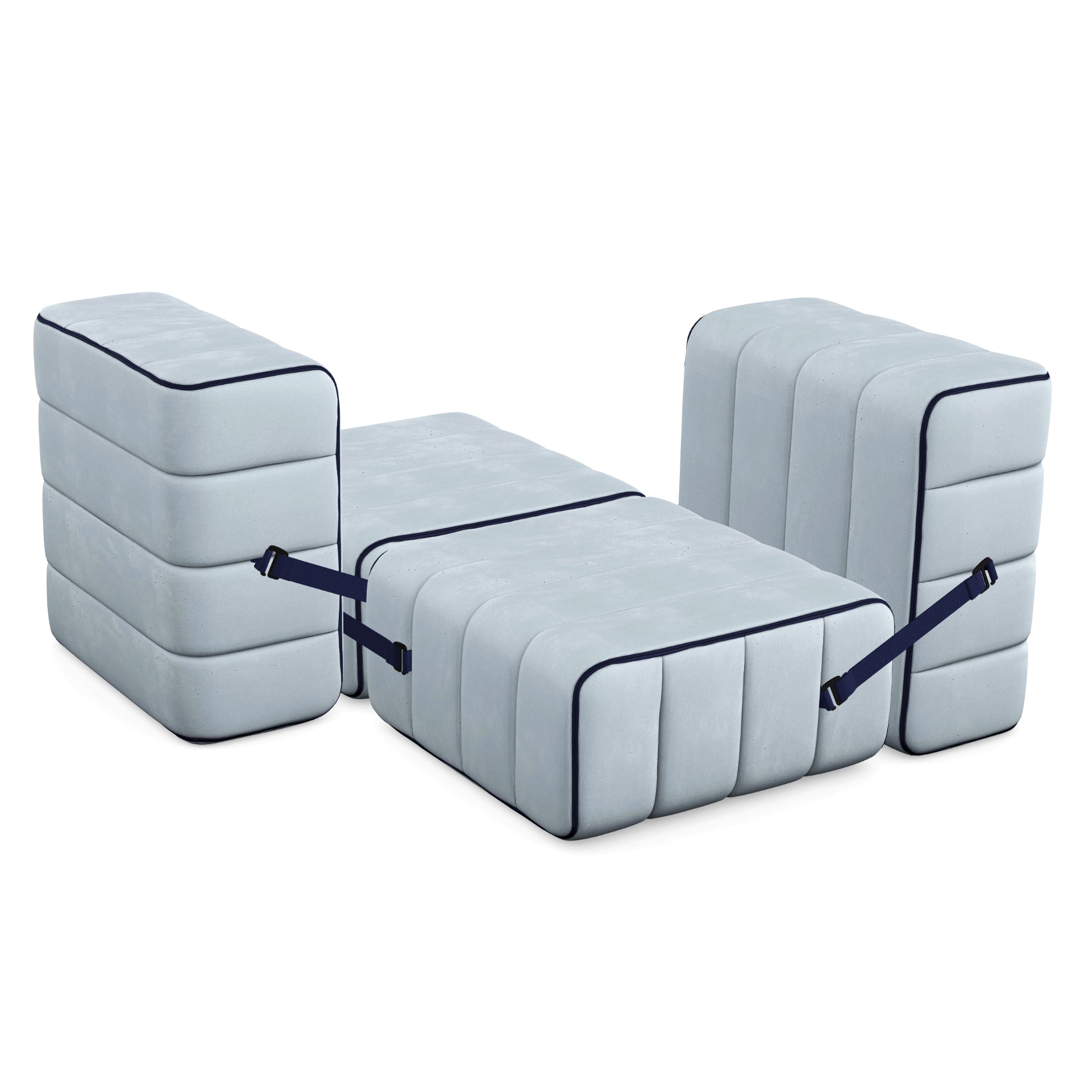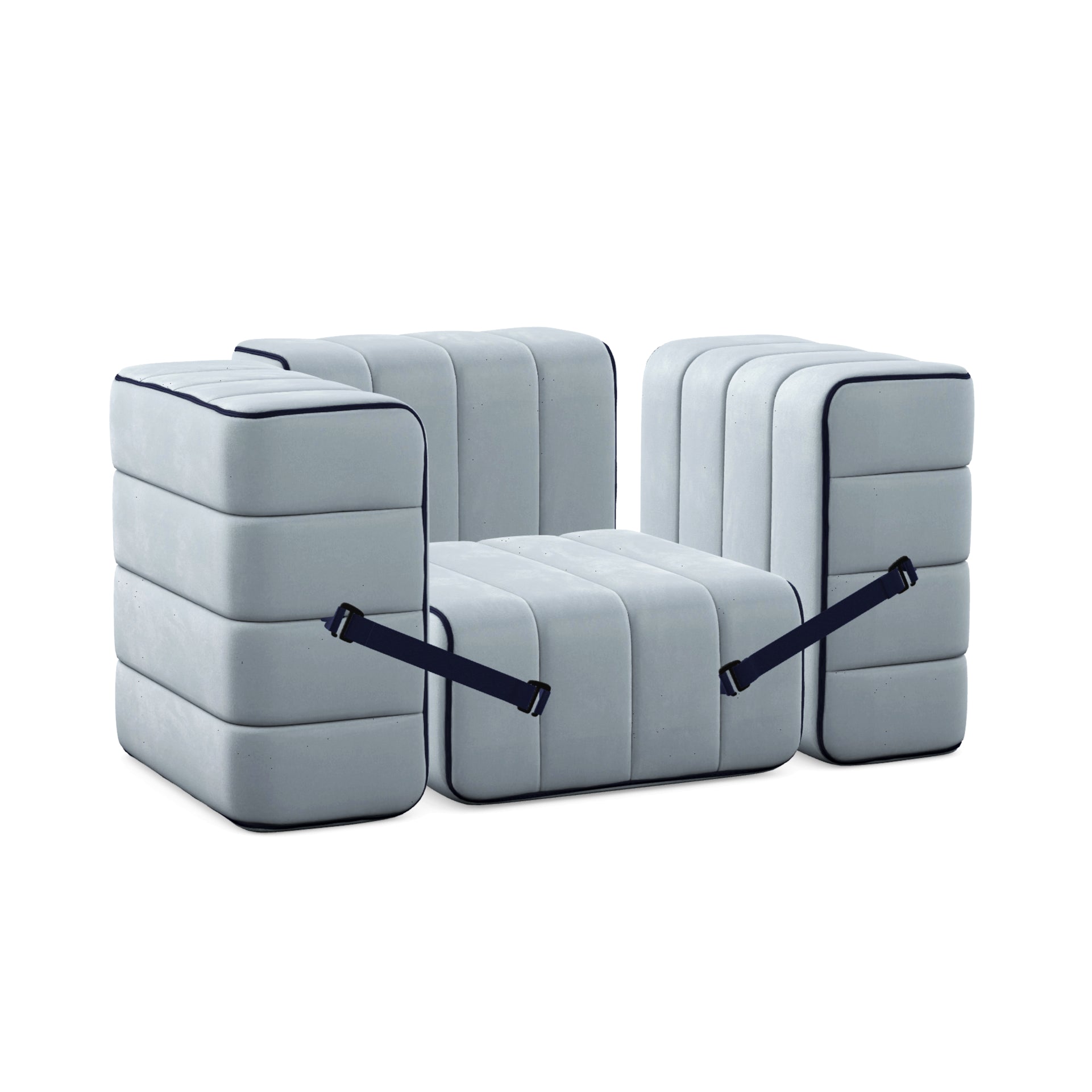 Aus gemütlichen Sofamodulen und einem einzigartigen Verbindungssystem aus Gurten entsteht ein unglaublich wandelbares Sofasystem - und dein ganz individuelles Sofa. Das kannst du jederzeit Deinen Wünschen anpassen und immer wieder neu gestalten!