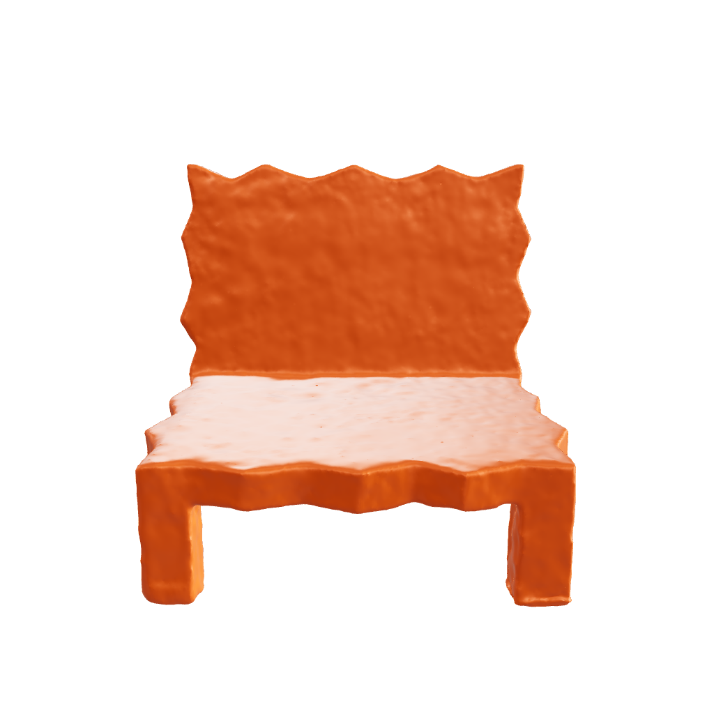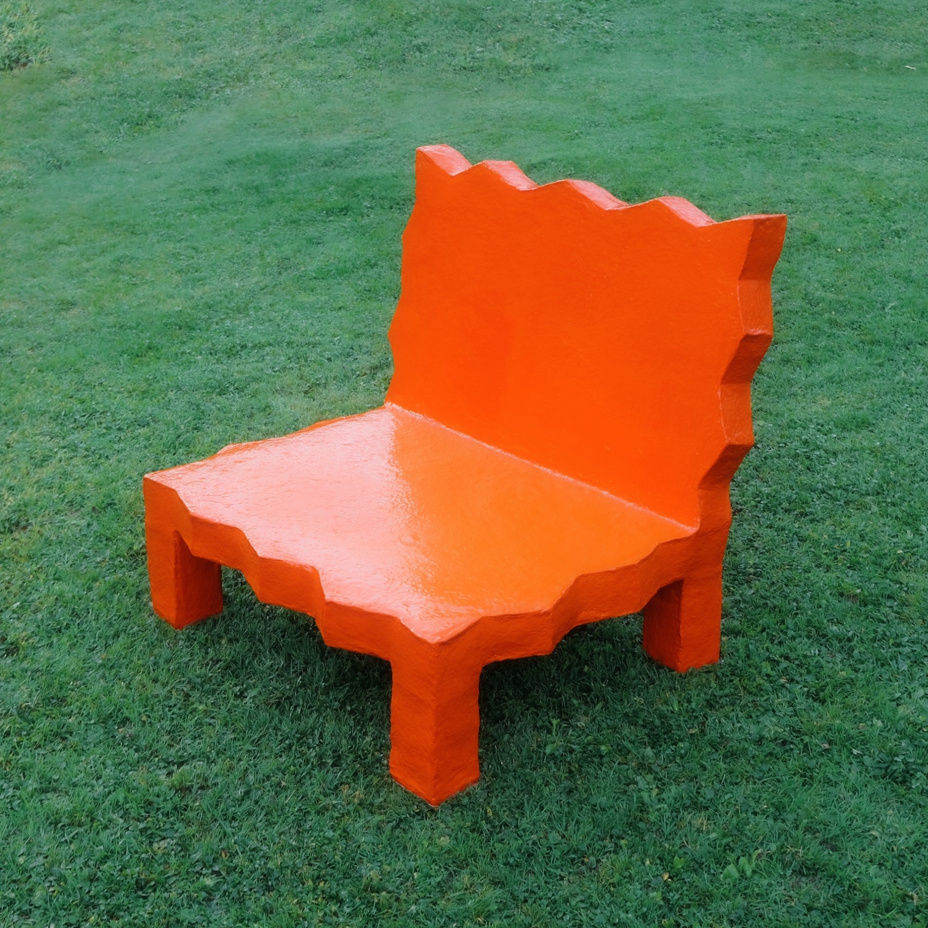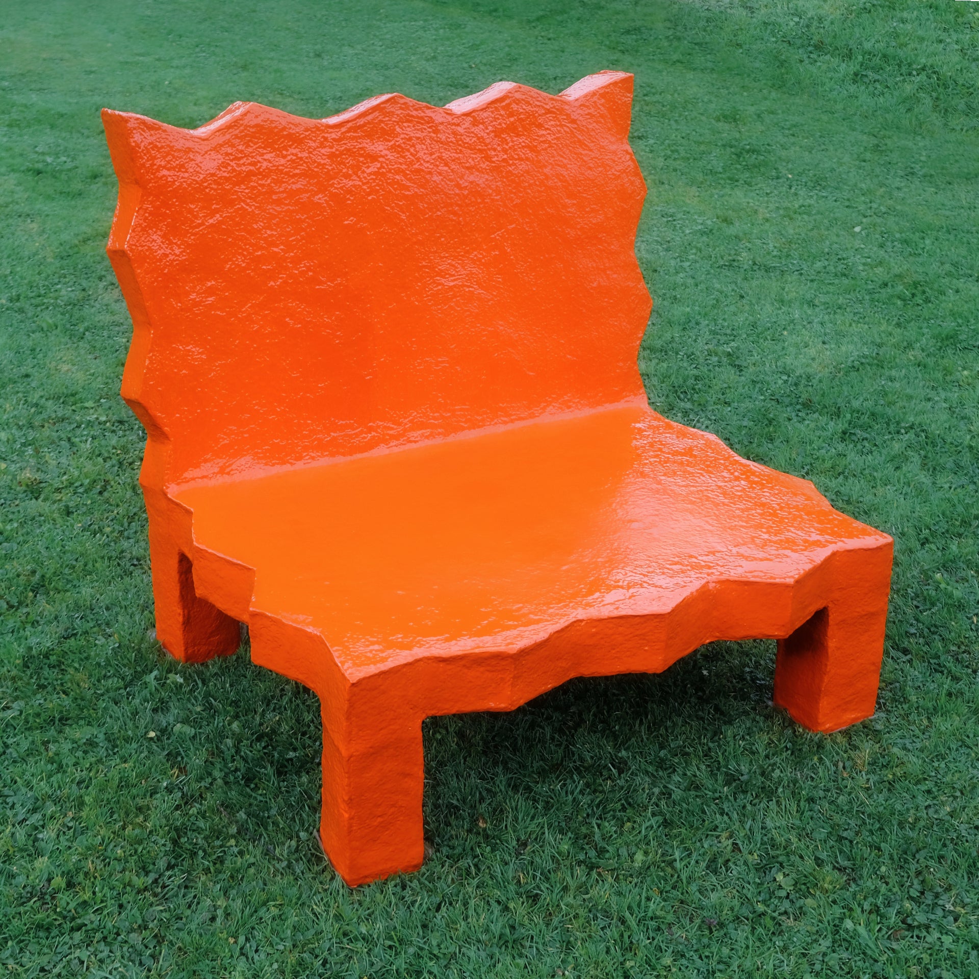 Der große EXTRA Sessel von EXTRALEBEN besteht aus über 90% recycelten Materialien wie Vollholz und Papier. Die mutige neue Form und das glänzende Orange verleihen dem Einzelstück einen strahlend neuen Look.