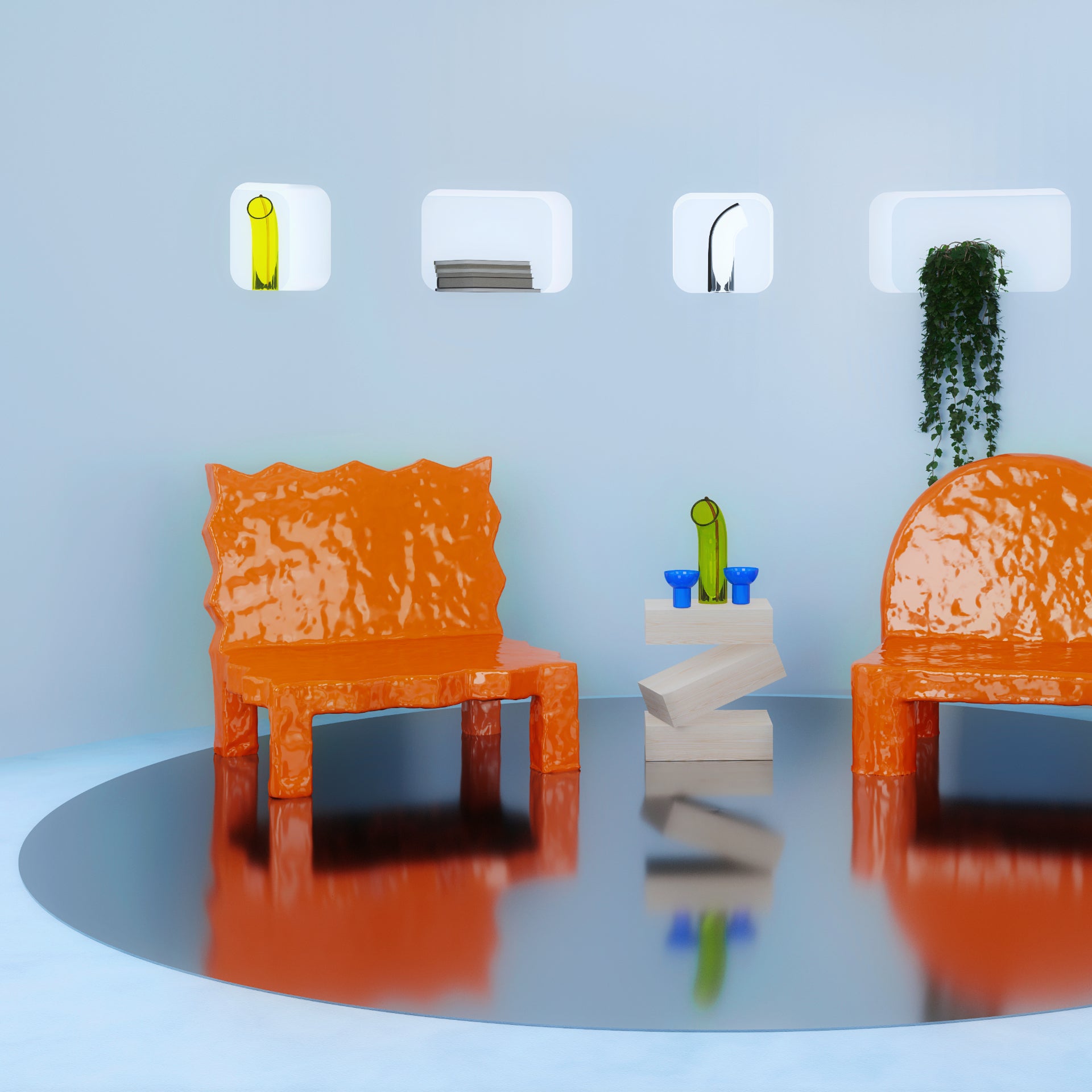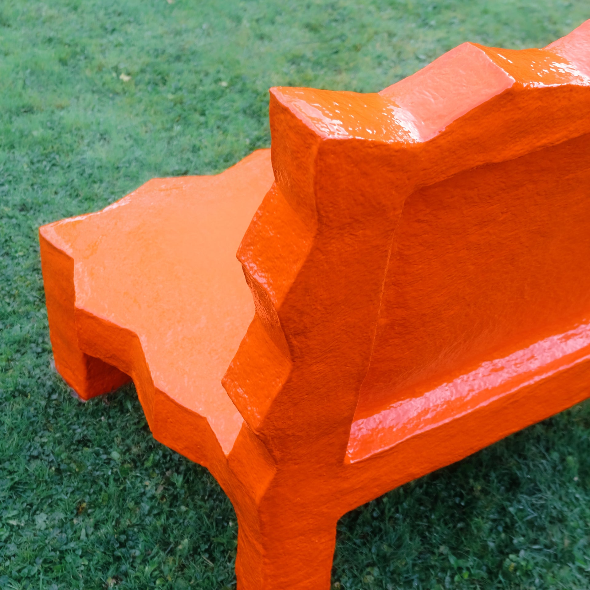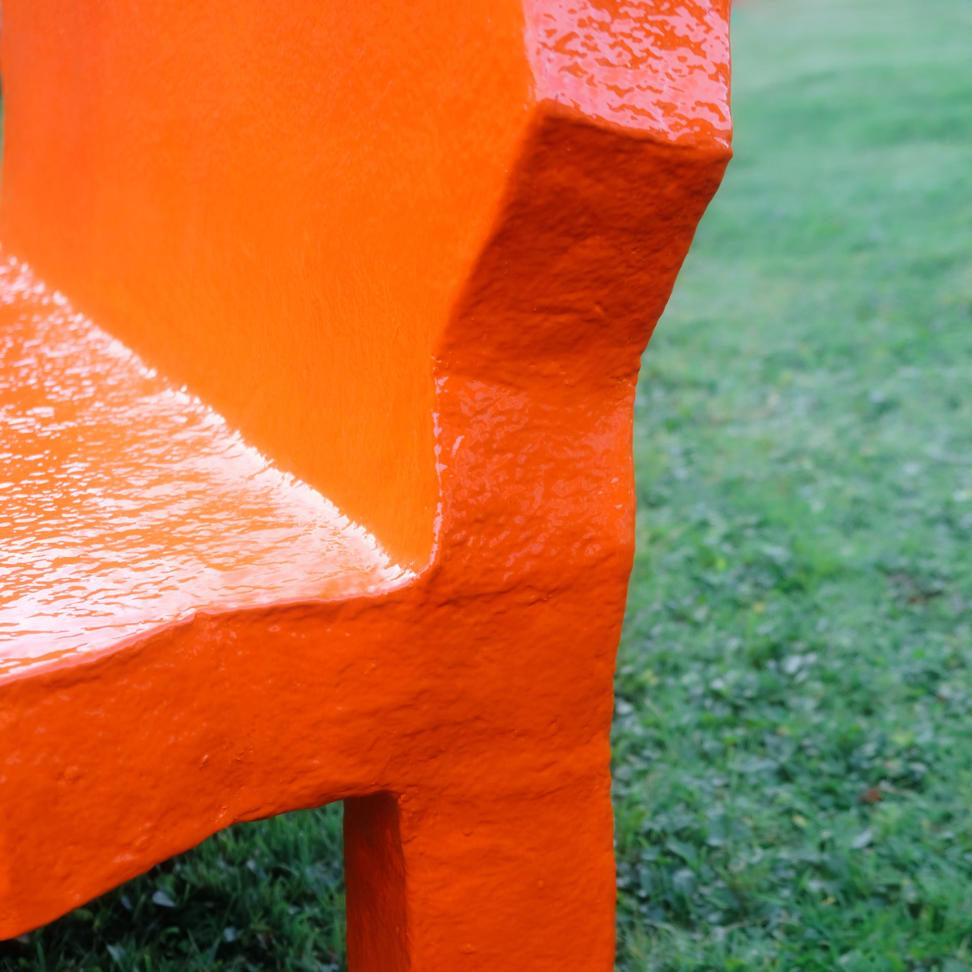 Der große EXTRA Sessel von EXTRALEBEN besteht aus über 90% recycelten Materialien wie Vollholz und Papier. Die mutige neue Form und das glänzende Orange verleihen dem Einzelstück einen strahlend neuen Look.