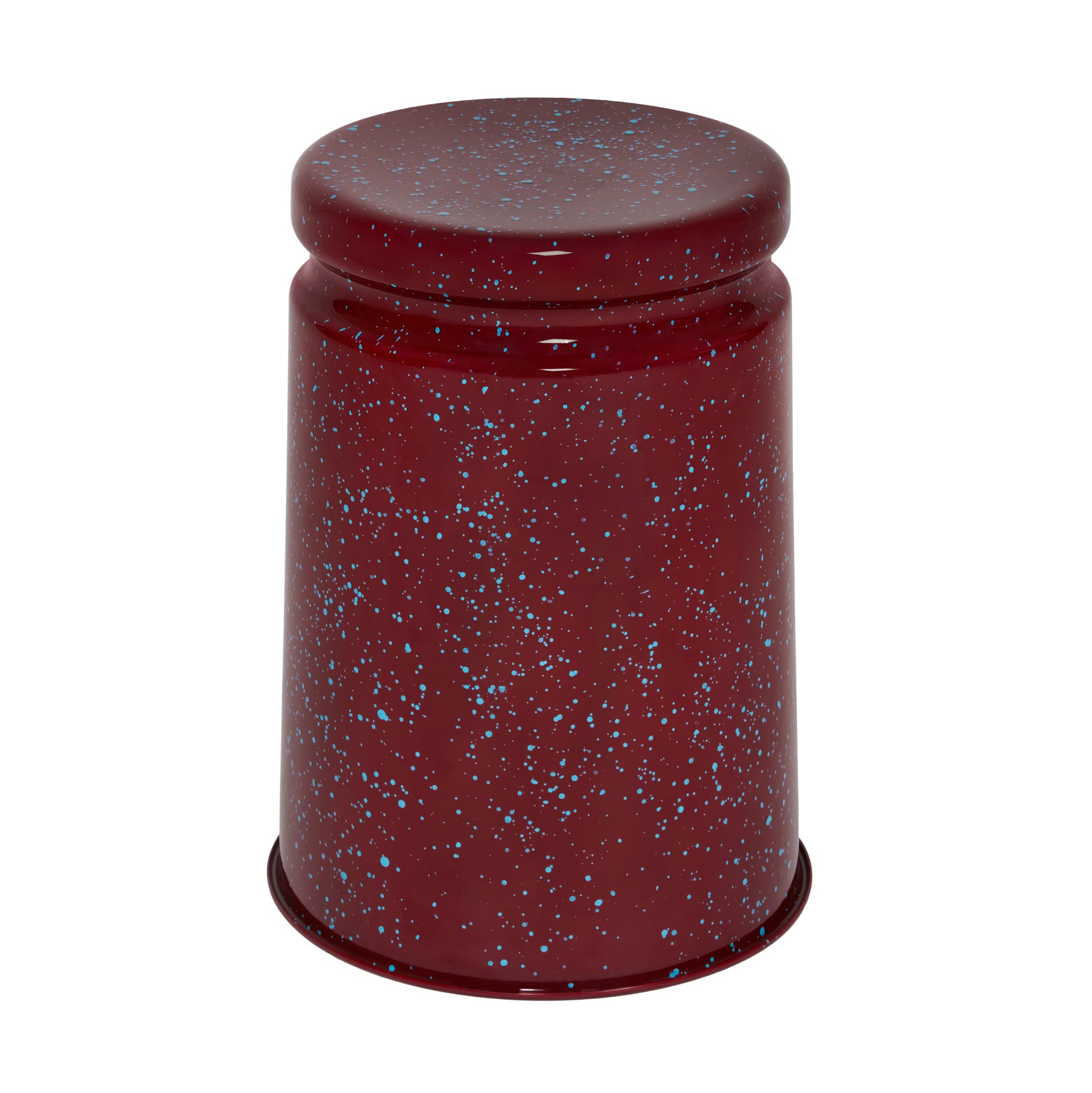 Wähle zwischen einfarbigem Emaille für einen gleichmäßigen Akzent oder einer handgespritzten Emaille-Oberfläche, die jeden Hocker zu einem Unikat macht.