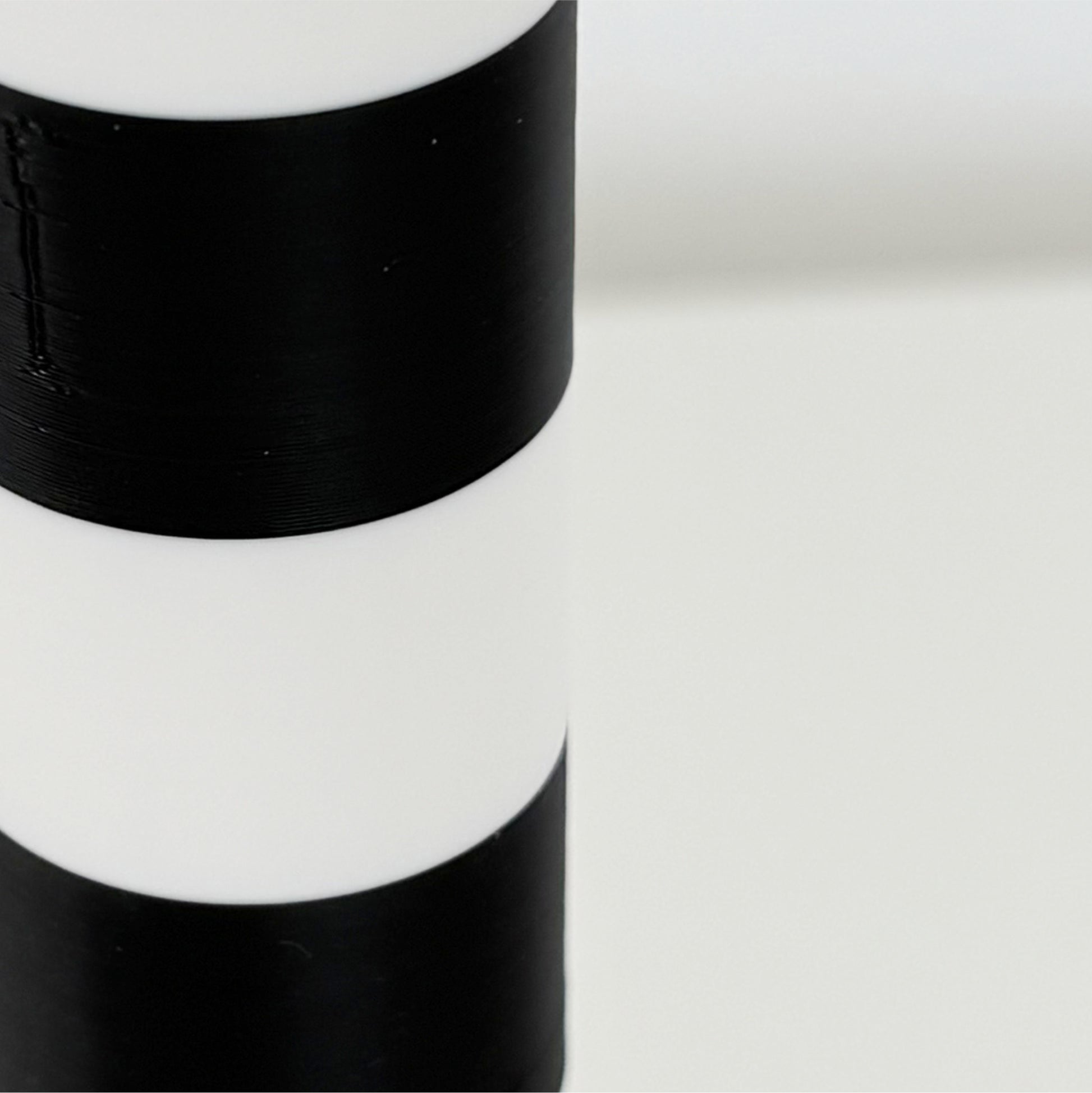 Der 3D-Druck besteht aus PLA-Filament, das aus Maisstärke gewonnen wird und ist recycelbar, biologisch abbaubar und industriell kompostierbar.