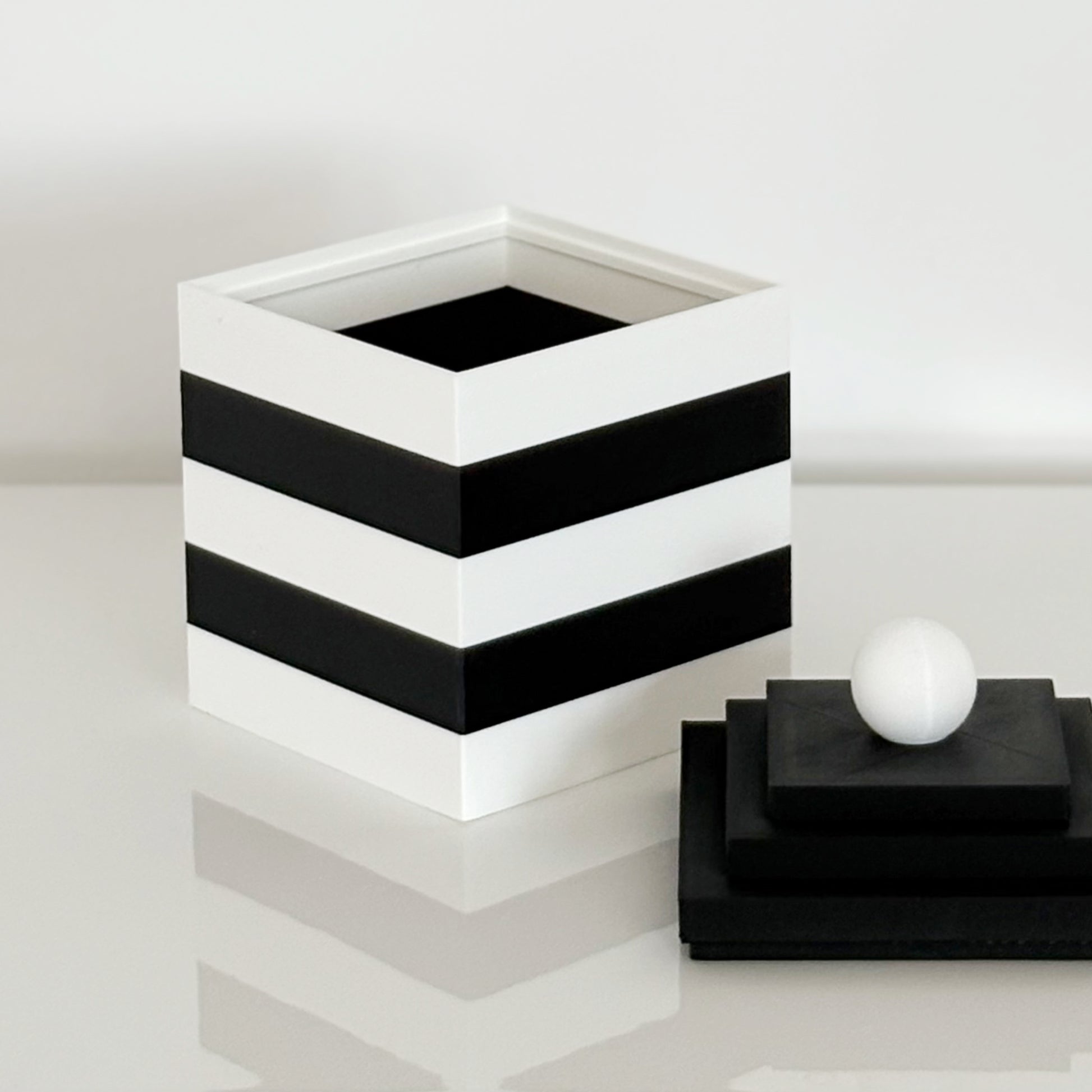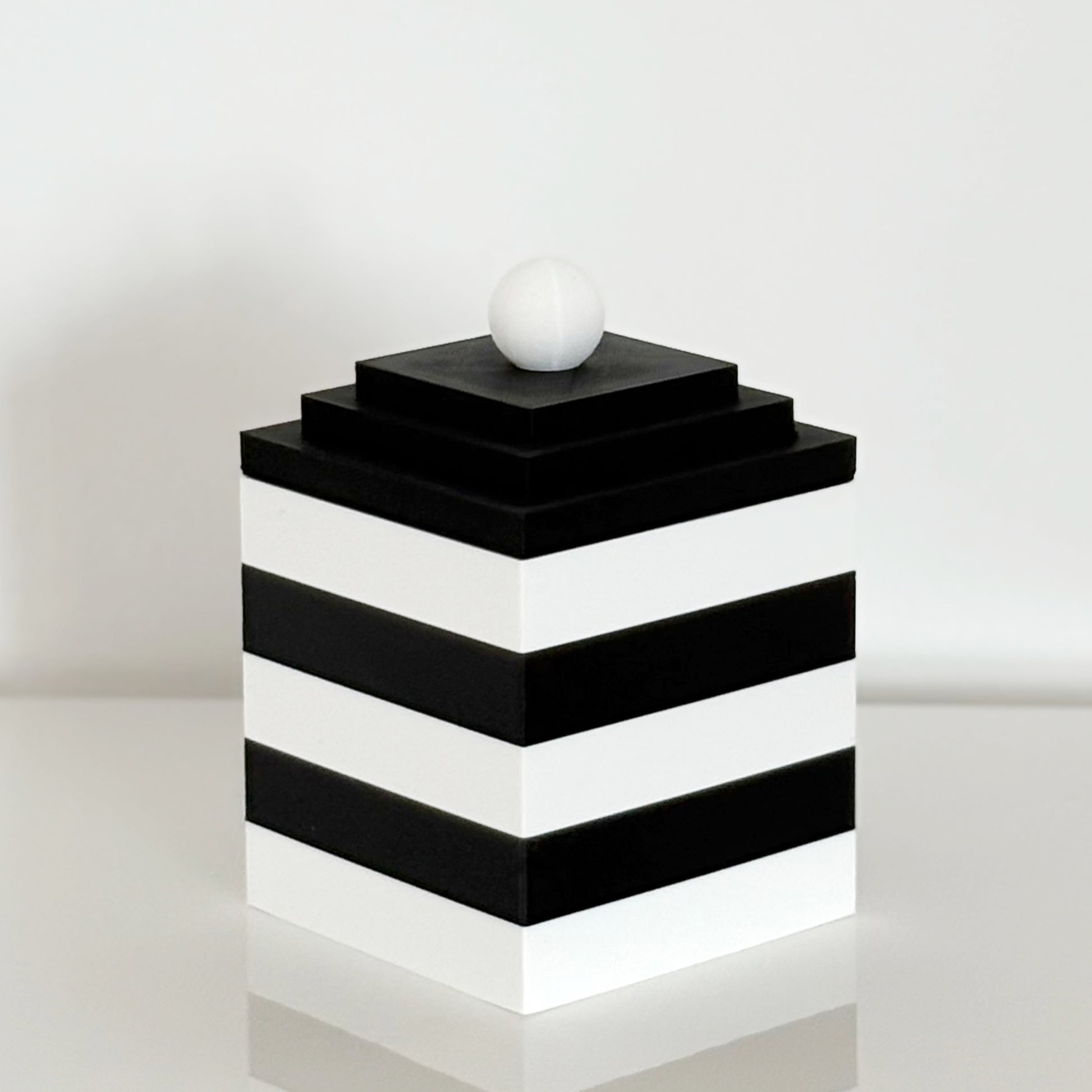 Die OLYMPIA Schatulle ist wie alle Designs von TETRI.OBJECTS von postmoderner Architektur inspiriert. Die strahlenden Objekte sind Skulpturen für das Zuhause, die Assoziationen zu traditionellen Formen wecken und sie neu interpretieren.