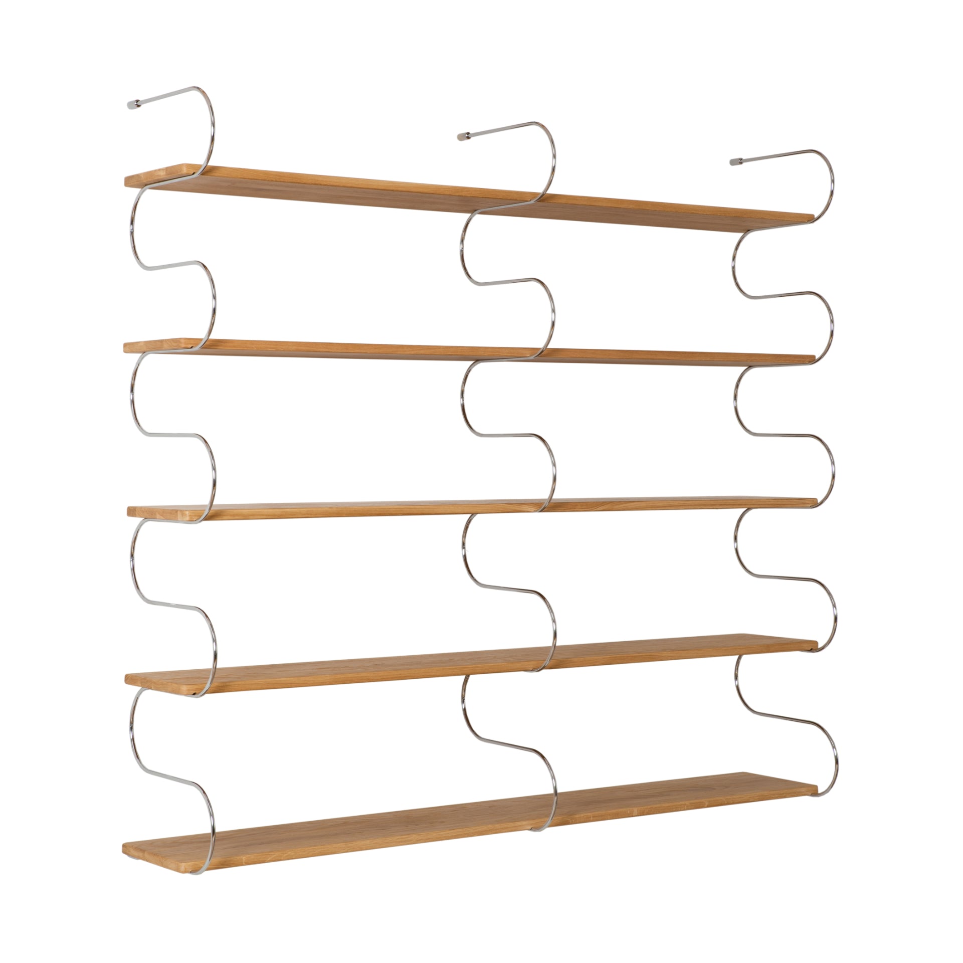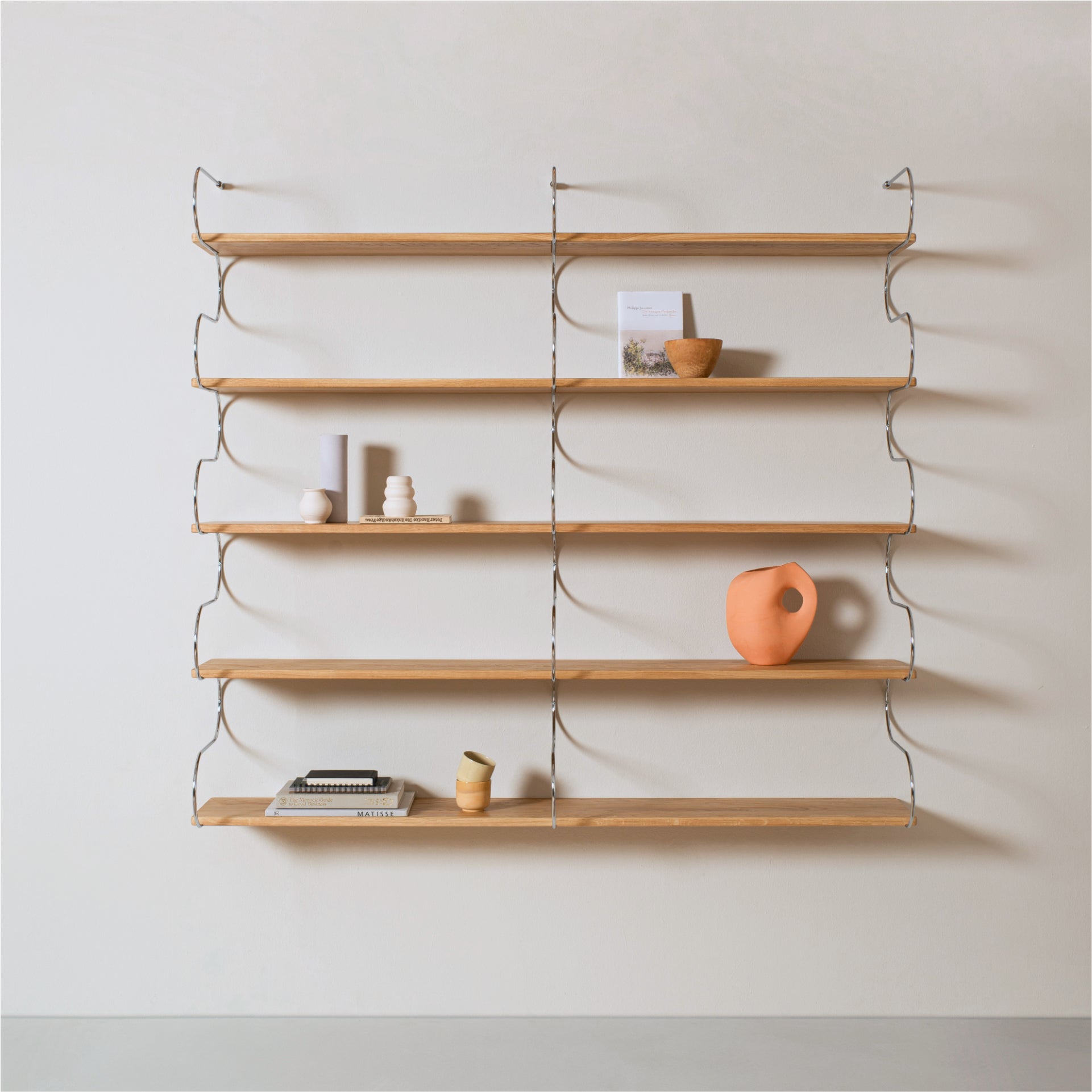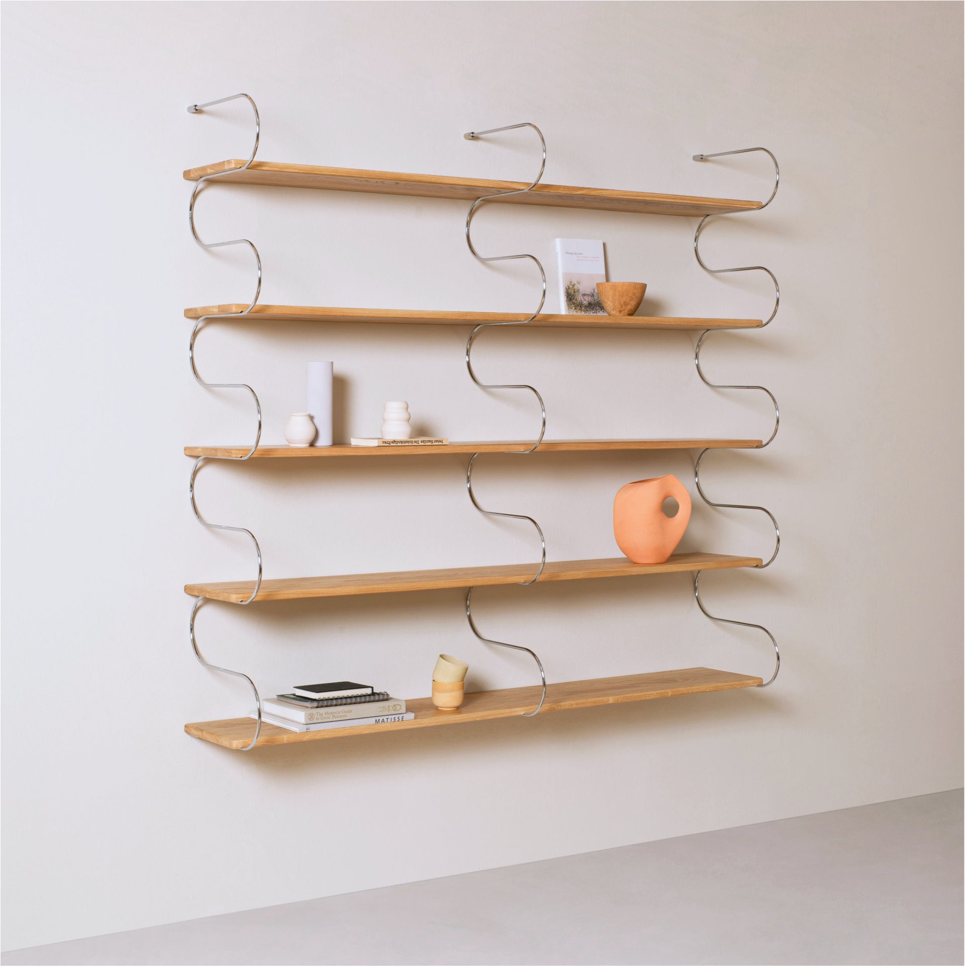 Onda ist ein flexibles, modulares System, das sich Deinen Bedürfnissen anpasst.Die Regalbretter aus Eichenholz gibt es in zwei verschiedenen Längen. Sie lassen sich dank einer kleinen Nut einfach auf die verchromten Rahmen setzen.