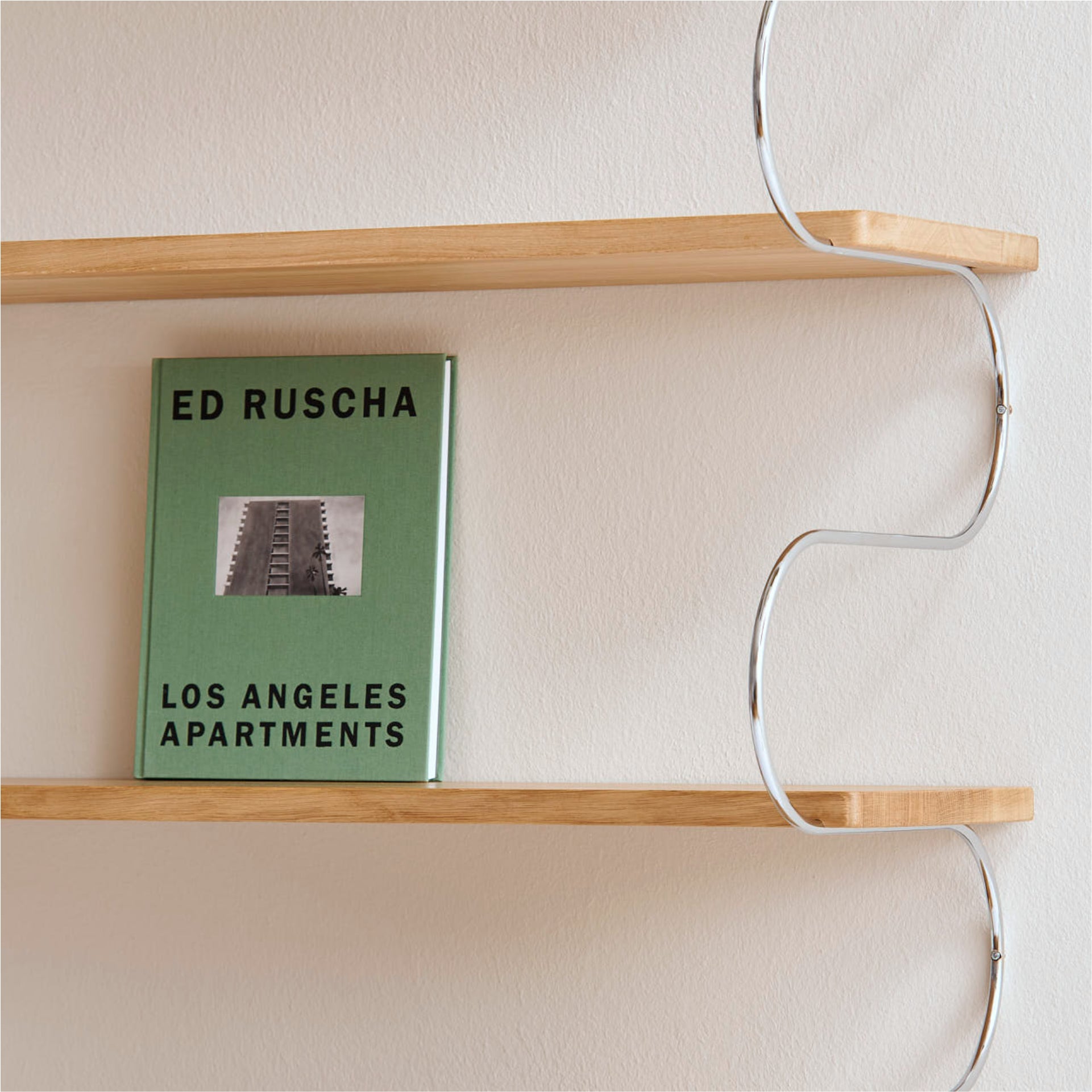 Onda ist ein flexibles, modulares System, das sich Deinen Bedürfnissen anpasst.Die Regalbretter aus Eichenholz gibt es in zwei verschiedenen Längen. Sie lassen sich dank einer kleinen Nut einfach auf die verchromten Rahmen setzen.