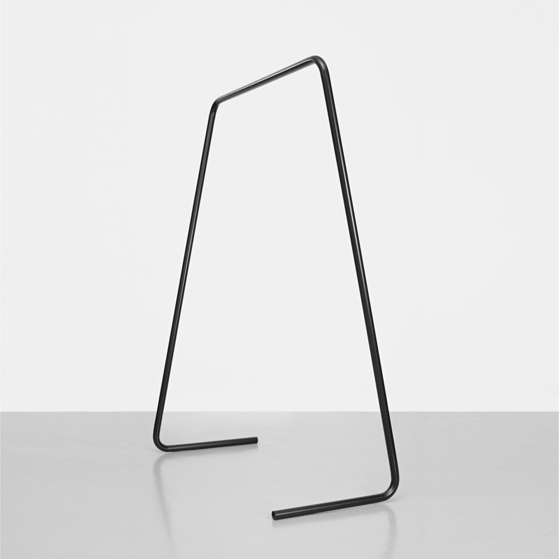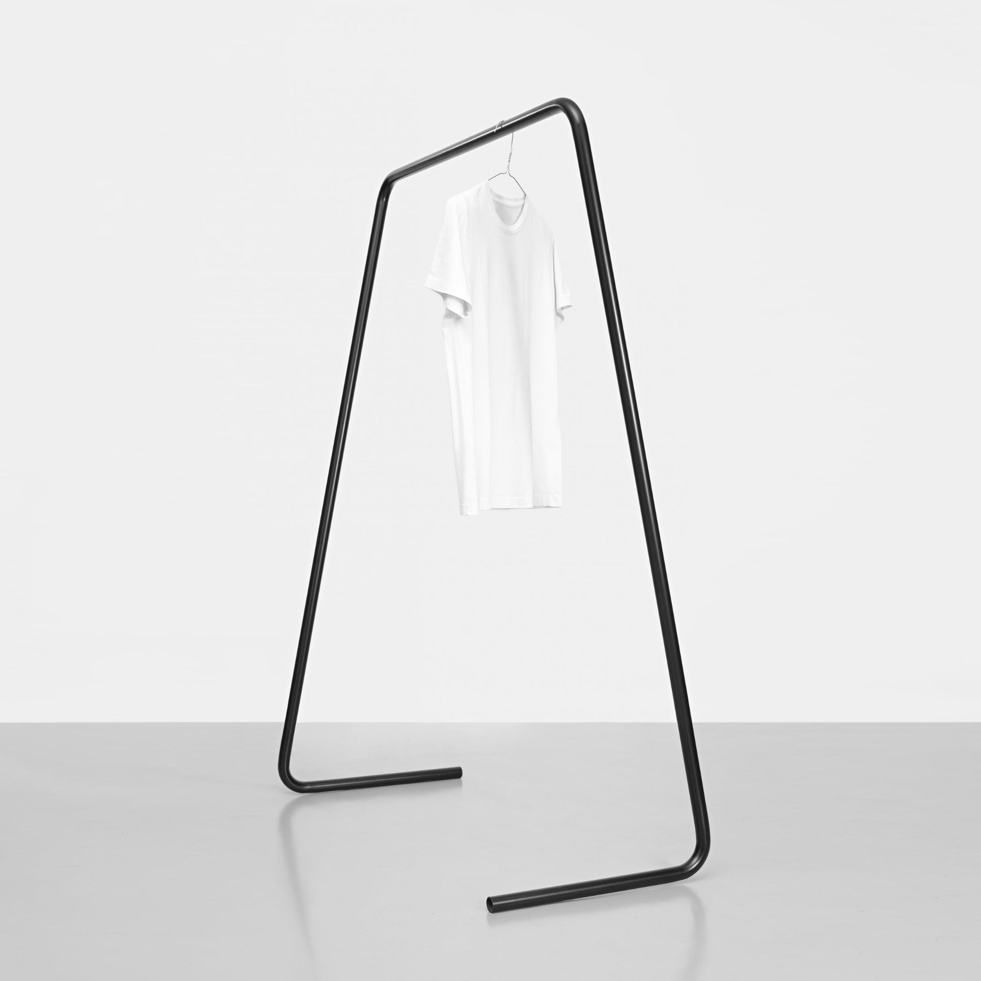 Der minimalistische Kleiderständer ONELINE von KLEMENS SCHILLINGER besteht aus einem einzigen Element - einem gebogenen Stahlrohr. Vier geschickte Biegungen verwandeln das Rohr in ein stabiles und dennoch leichtes Objekt, das deine liebsten Kleidungsstücke trägt.