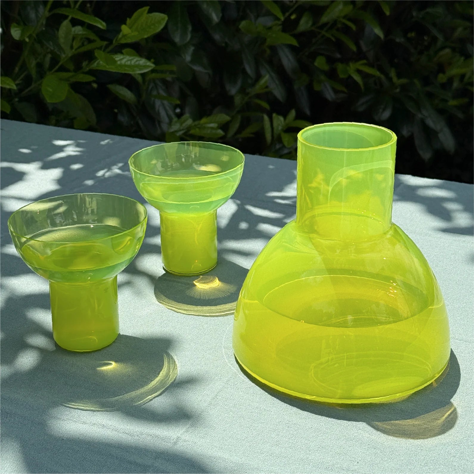 Das mundgeblasene Objekt in strahlender Farbe eignet sie sich gleichermaßen zum Servieren von Getränken oder als Vase für Blumen.