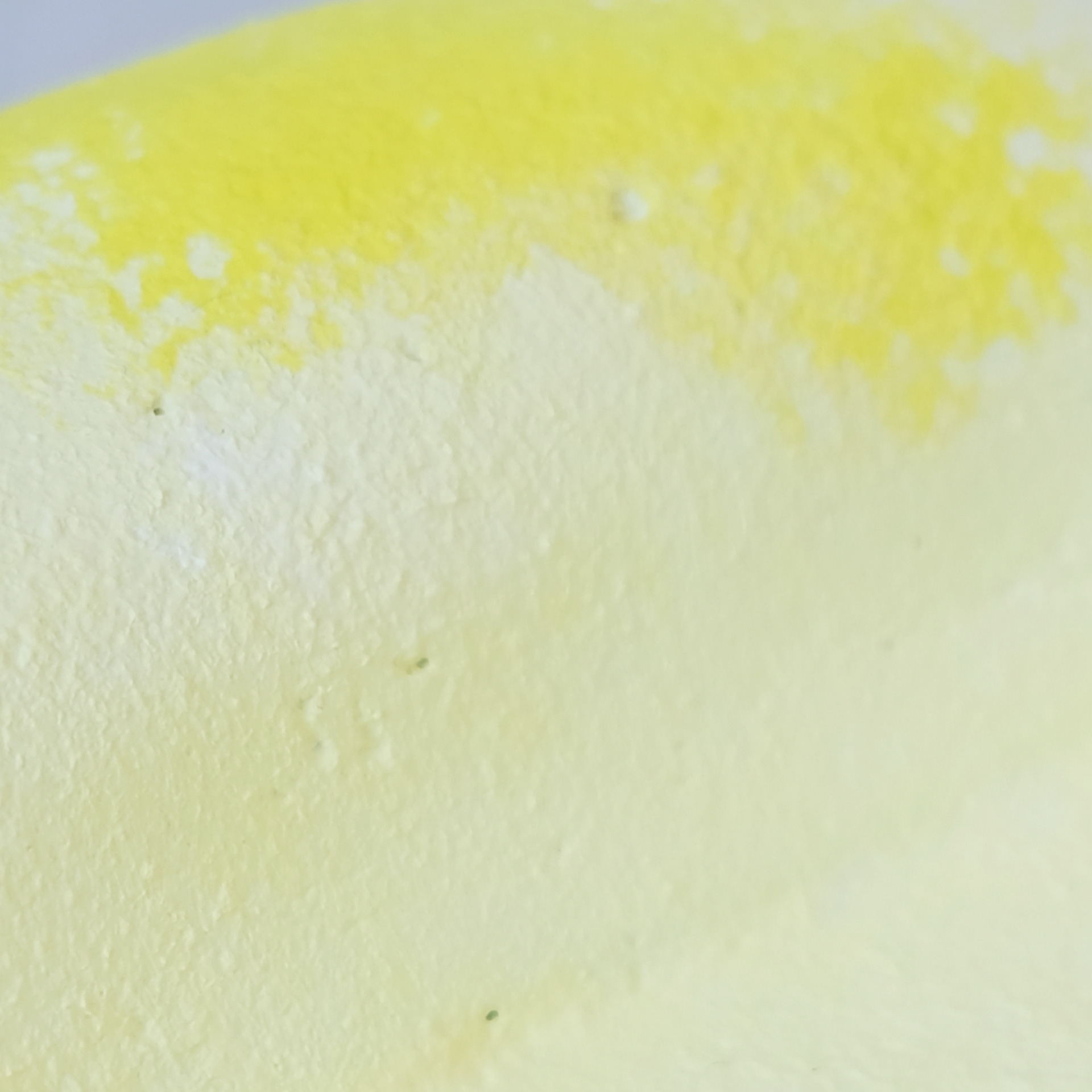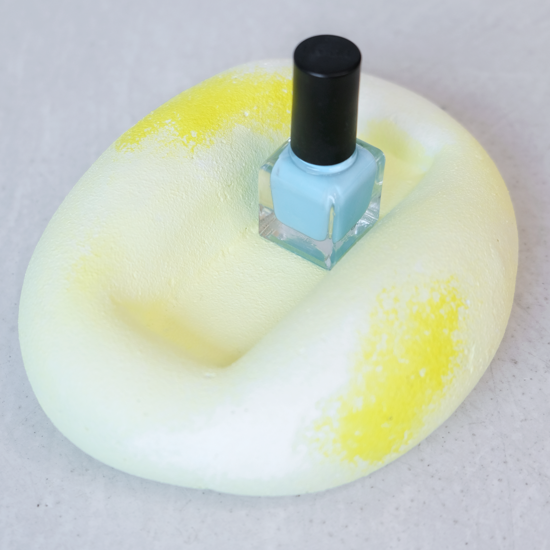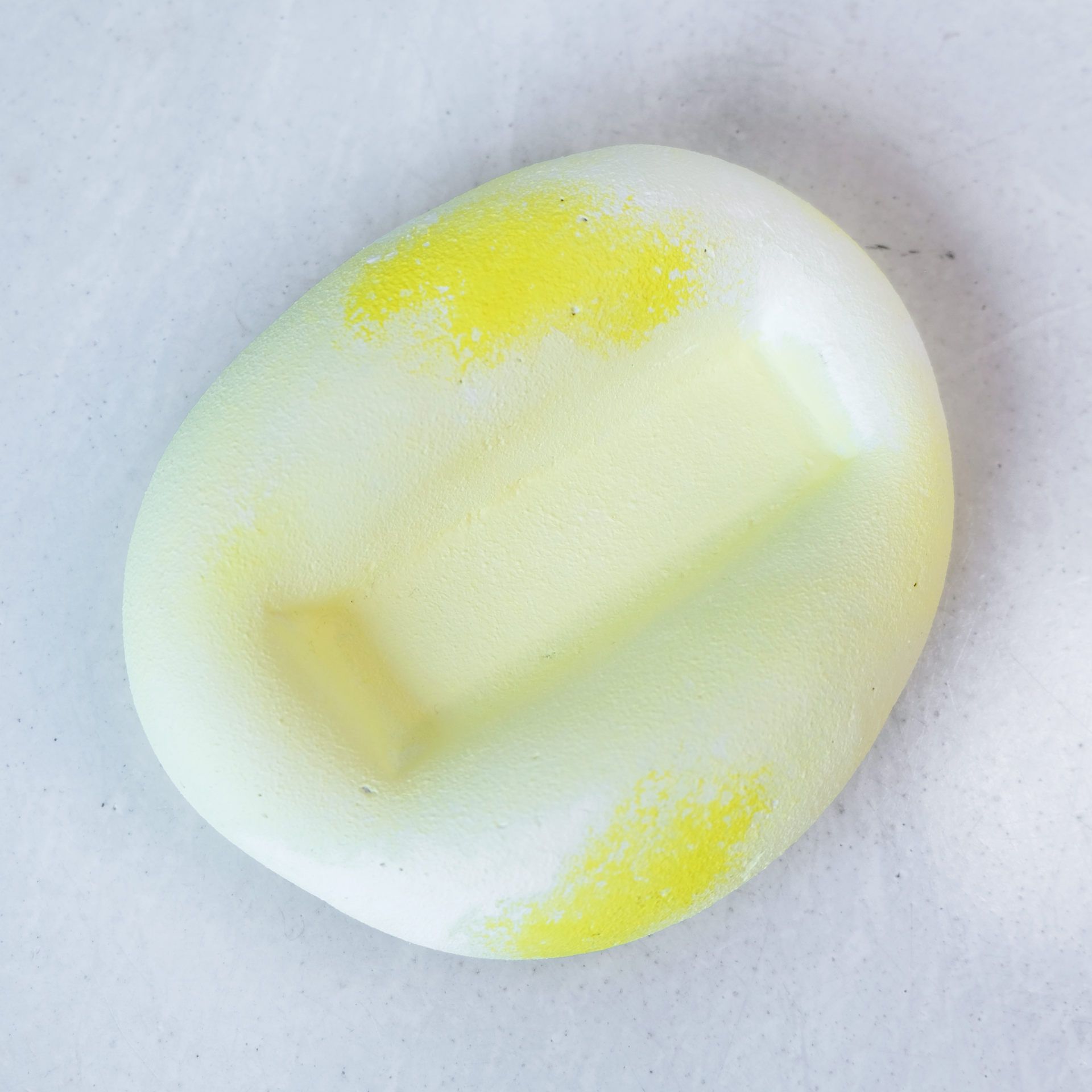 Die weiche Form und die sanft ineinanderfließenden Farben des Objektes stehen im Kontrast zum Material: Beton.