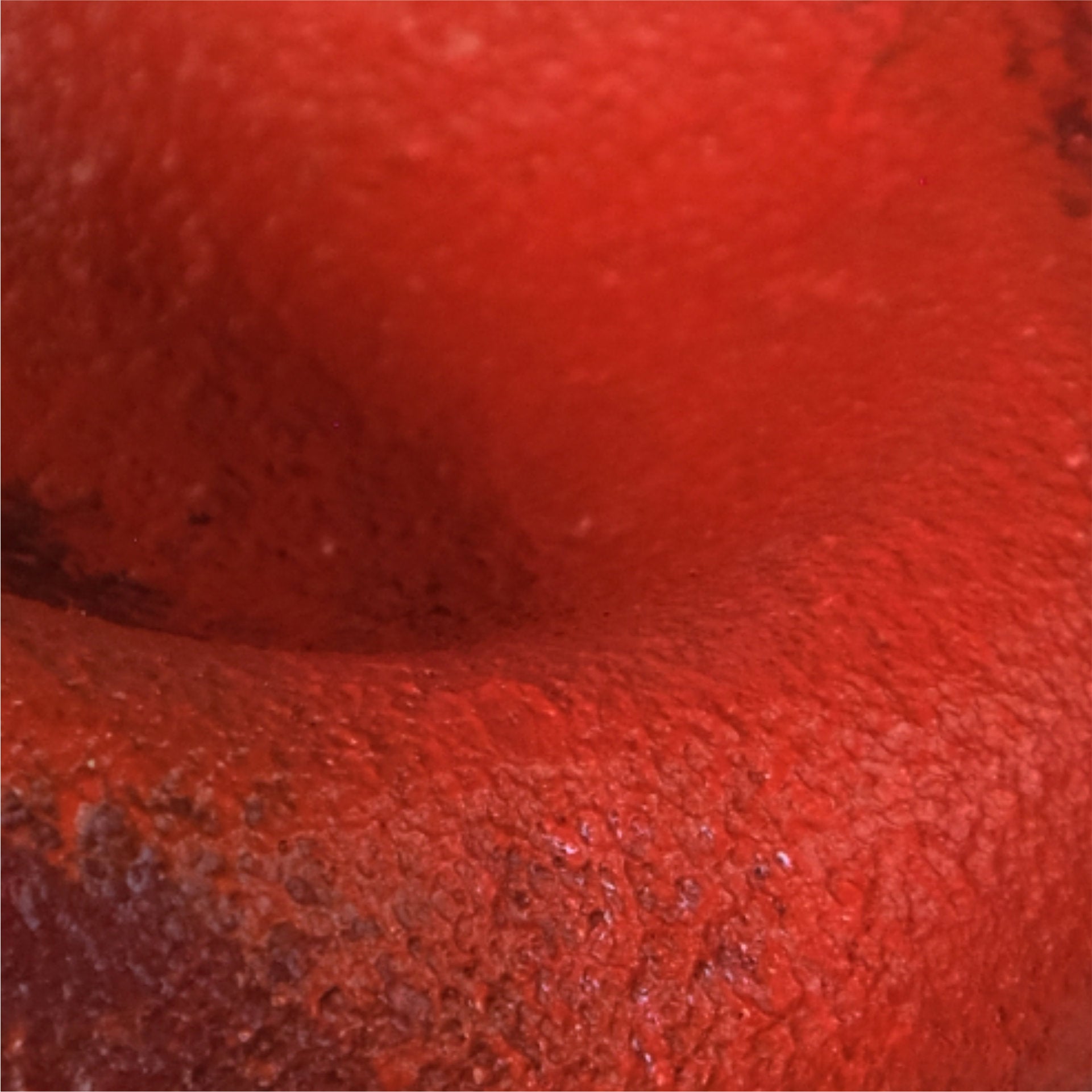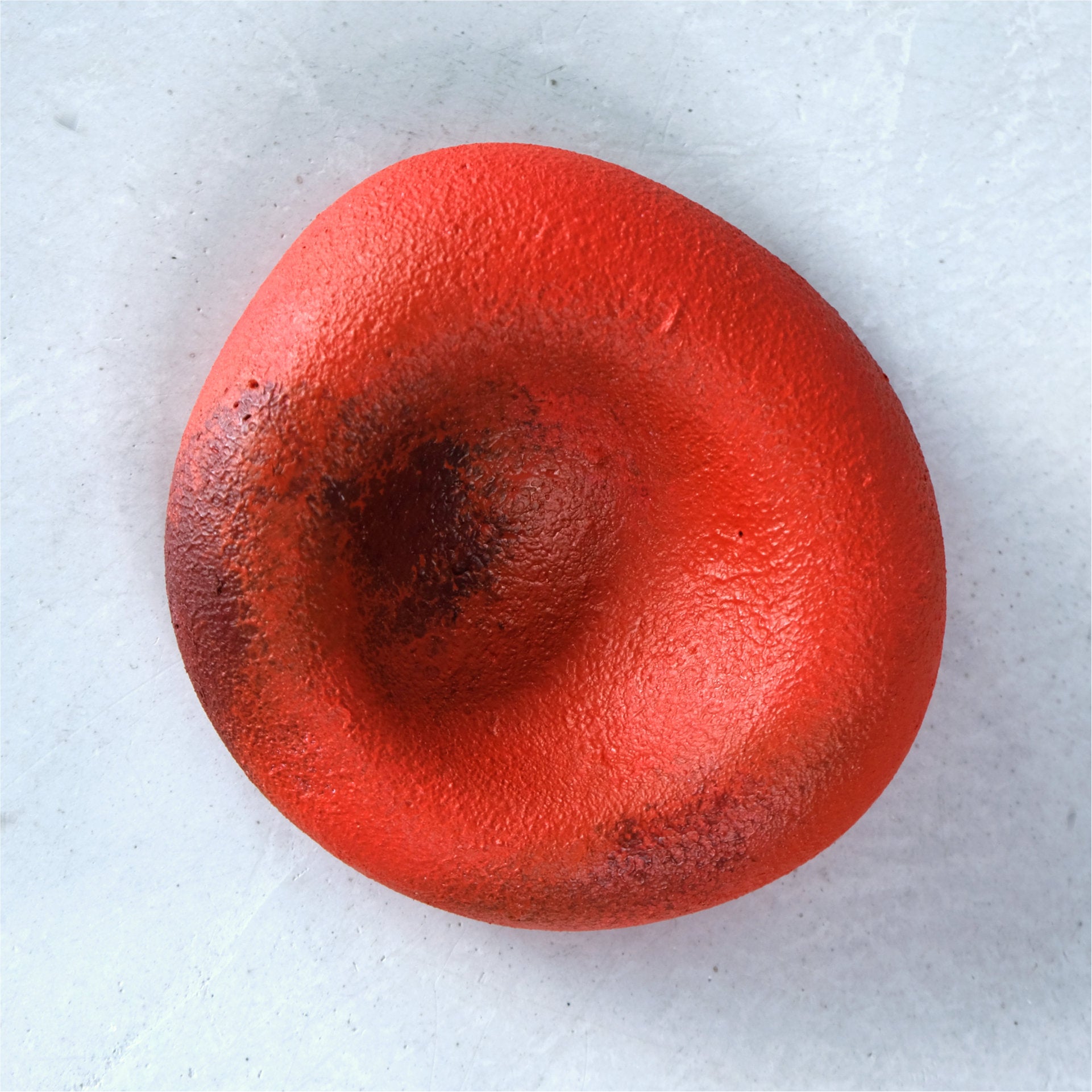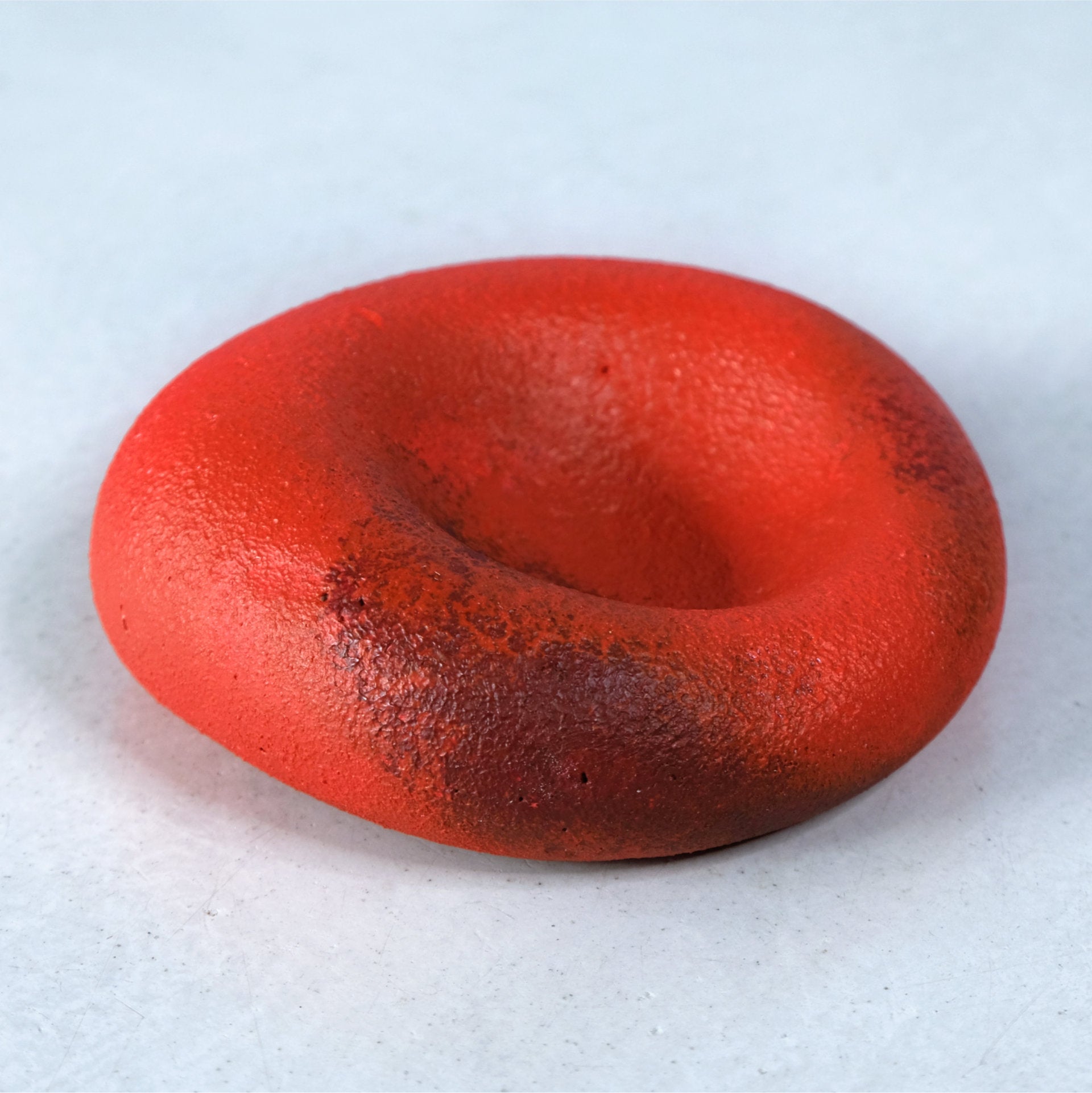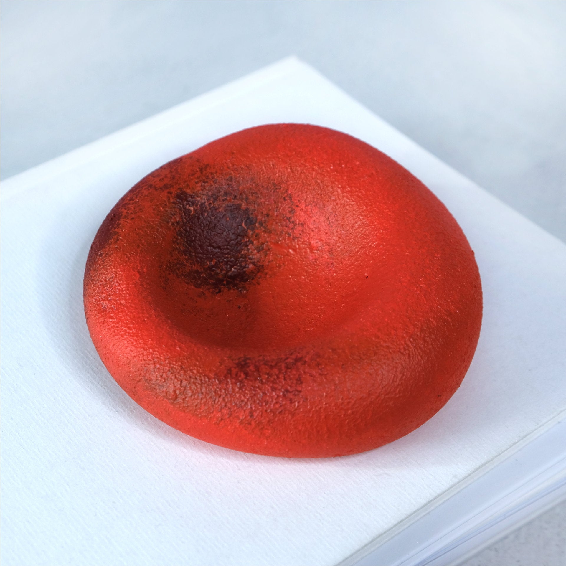 Die weiche Form und die sanft ineinanderfließenden Farben des Objektes stehen im Kontrast zum Material: Beton.