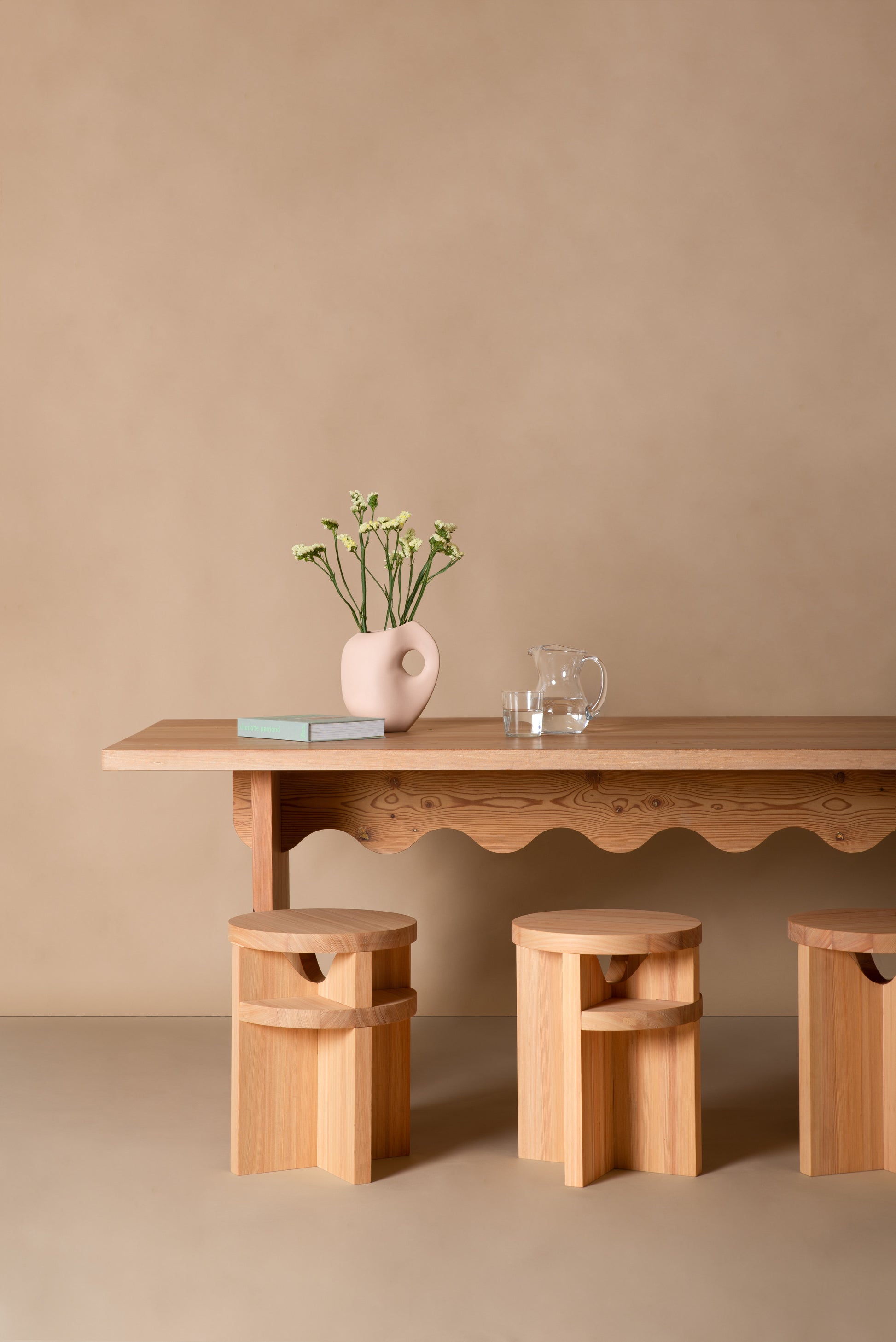 Der TAMI Hocker aus der Tami Dining Collection verbindet in seiner Form die Idee des Zusammenkommens und Teilens und schafft einen Ort des Vertrauens und der Verbundenheit.