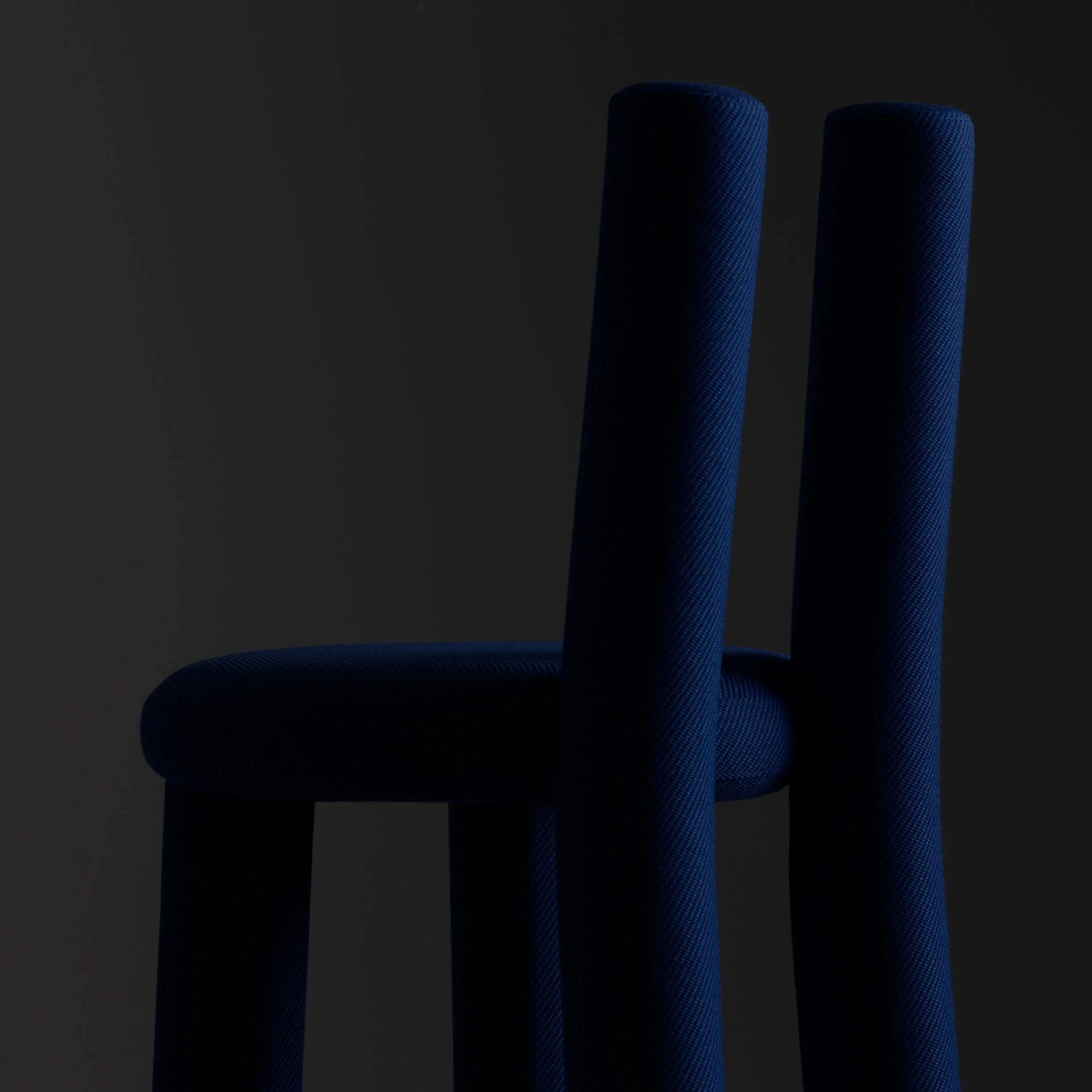 Der Stuhl YAY von GUMPO mit seiner originellen Rückenlehne ist ein Statement Piece. Dazu ist die ungewöhnliche Form durch die intelligente Polsterung unerwartet bequem.